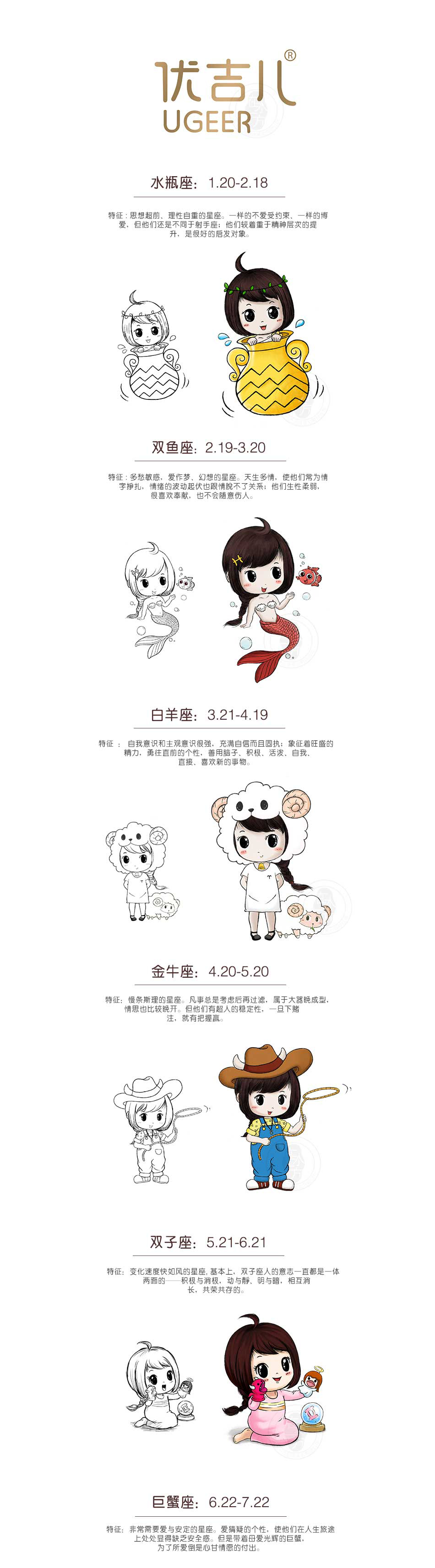 項目方案:優(yōu)吉兒品牌深挖個性特征,選擇從星座角度入手形成品牌認知,豐富品牌文化內涵的同時,提煉出具有系統(tǒng)性及個性化的形象載體,凸顯品牌多元化特質,配套于渠道宣傳,有助于品牌知名度的提升。