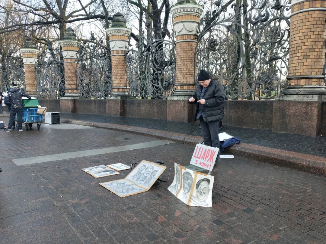 民間藝術(shù)家也開始了新的一天,用自己的畫作吸引過往游客的目光,美無國界,總有機會得到藝術(shù)愛好者的欣賞。