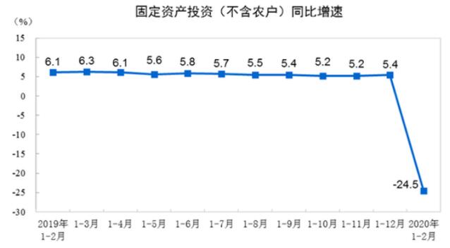投資方面,1-2月份,全國固定資產(chǎn)投資(不含農(nóng)戶)33323億元,同比下降24.5%。