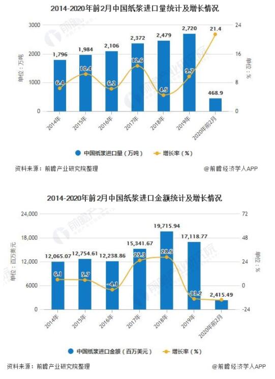 2020年1-2月中國(guó)紙漿進(jìn)口量將近470萬噸