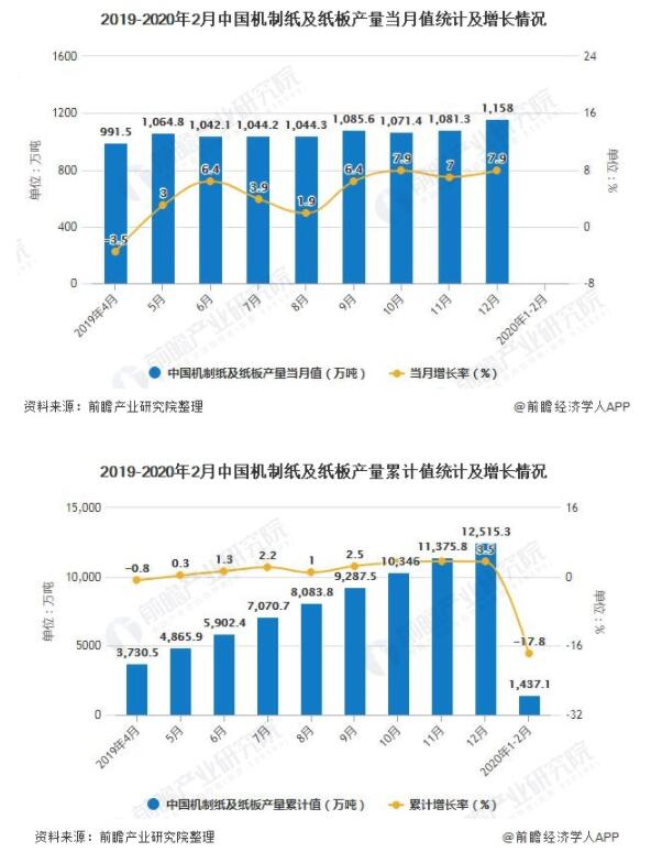 2020年1-2月中國(guó)機(jī)制紙及紙板產(chǎn)量超1400萬噸