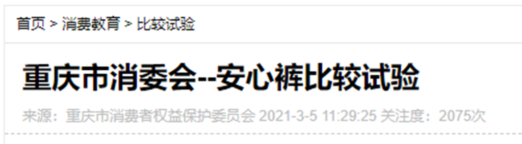 經(jīng)過深入了解,發(fā)現(xiàn)重慶市消費(fèi)者權(quán)益保護(hù)委員會的確曾經(jīng)發(fā)布過關(guān)于安心褲的檢驗(yàn)結(jié)果,此次對目前市場上比較暢銷的15款安心褲開展了比較試驗(yàn),主要對安心褲的衛(wèi)生性能、安全性能、功能性指標(biāo)、舒適性指標(biāo)等進(jìn)行測試。.png)