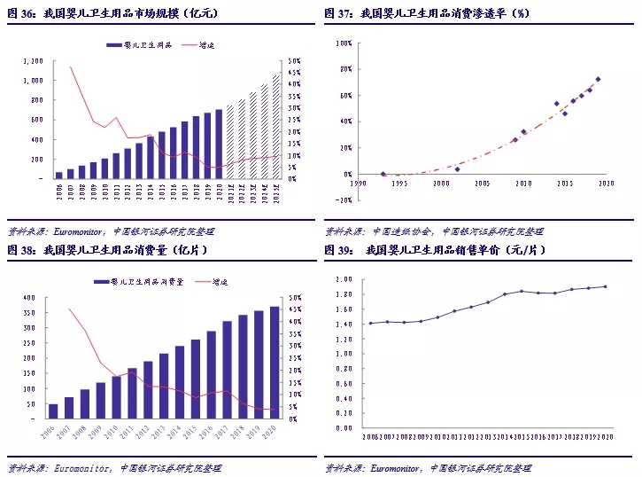 目前市場競爭格局的變化說明我國嬰兒衛(wèi)生用品市場尚未成熟,仍存在發(fā)展的較大空間,在消費升級和市場體量擴張下外資企業(yè)和國內(nèi)新銳企業(yè)都有規(guī)模增長、擴張市場份額的機會。短期內(nèi)我國嬰兒衛(wèi)生用品市場的行業(yè)集中度可能不會快速回升,新銳品牌的加入推動了產(chǎn)品升級也給行業(yè)帶來了活力和更多競爭,國產(chǎn)品牌具有本土化的電商營銷能力與新渠道把控力,以及適應性更強的新品迭代能力,因此和外資品牌的拉鋸戰(zhàn)可能會持續(xù)進行。長期來看,參考女性衛(wèi)生用品市場的發(fā)展路徑,市場成熟后外資品牌的品牌效應會逐步顯現(xiàn),未能成功樹立品牌影響力的國產(chǎn)新銳品牌或?qū)⒅鸩酵顺鍪袌?,行業(yè)屆時將再次向龍頭集中聚攏。