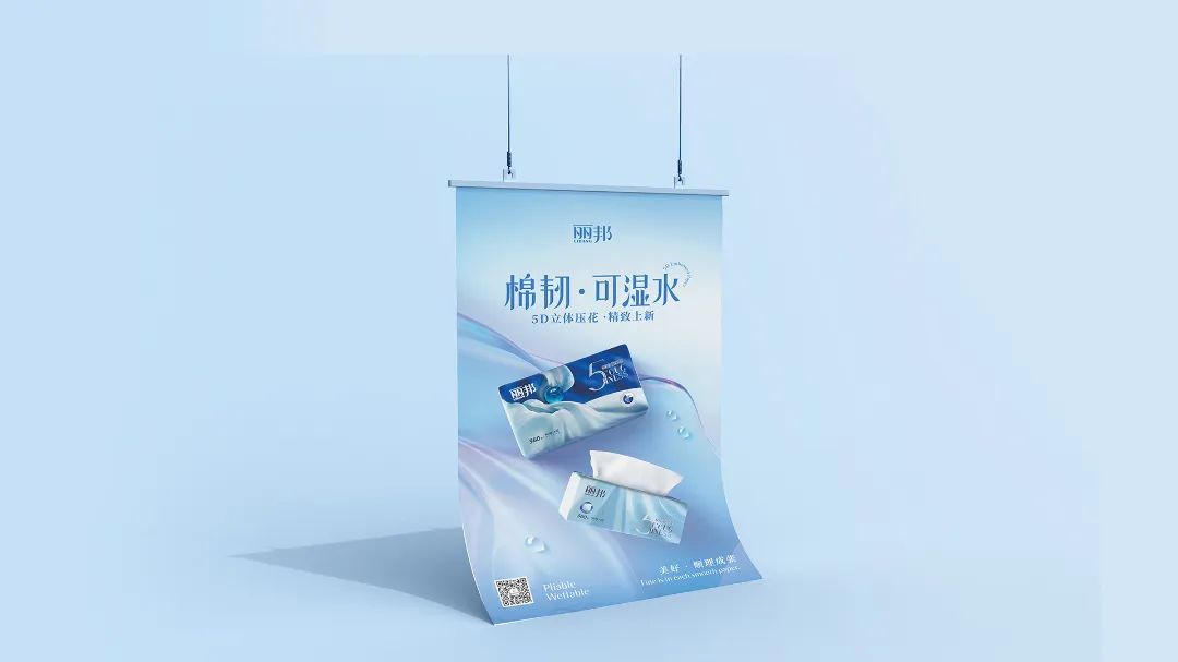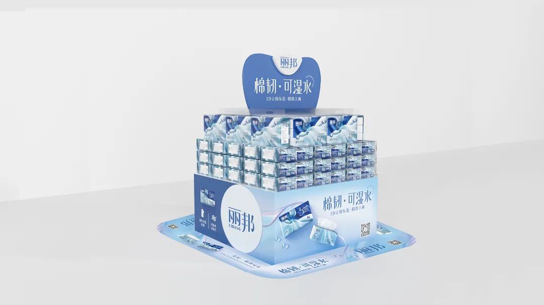 棉韌·可濕水系列攜5D立體壓花精致上新,海報購物袋堆頭展示架等終端物料一體配套,直指產(chǎn)品核心訴求。