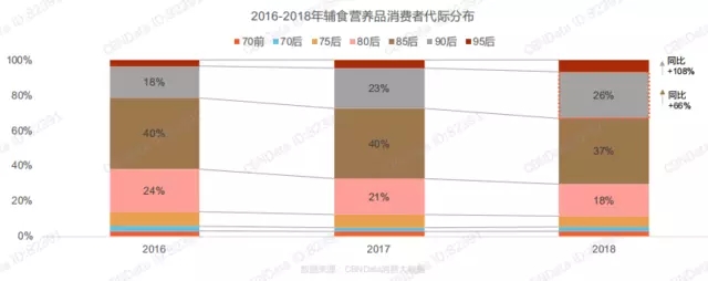 隨著90后新生代媽媽的不斷增多,母嬰人群的認(rèn)知水平及消費(fèi)水平大幅提升,她們更愛(ài)愿意為“健康”的生活態(tài)度付費(fèi)。從上圖可以看出,近三年來(lái),85后仍為輔食營(yíng)養(yǎng)品的主要購(gòu)買人群,人數(shù)占比為40%左右,在所有人群中最為強(qiáng)勢(shì);而90/95后作為新生代母嬰消費(fèi)人群異軍突起,消費(fèi)者人數(shù)大幅增長(zhǎng),人數(shù)占比從2016年18%提升至30%以上,其中,90后成為一股新興力量,2018年較2017年增長(zhǎng)66%,有望成為嬰幼兒營(yíng)養(yǎng)品的下一個(gè)主力人群。