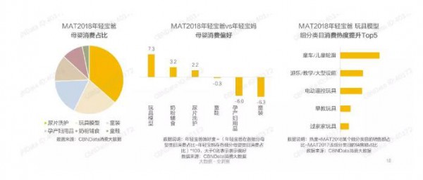 隨著“互聯(lián)網(wǎng)+”的深入發(fā)展,嬰童市場的消費群體正在被重構(gòu)。一直以來我們都認為媽媽是母嬰消費市場的主要人群,但近年來,隨著80后、90后年輕一代父母的崛起,再加上社會觀念的轉(zhuǎn)變,越來越多的爸爸參與到育兒活動以及家庭日常消費中,成為母嬰消費新的增長點。一些爸爸帶孩子參加的綜藝在社會上引起熱議,不僅表明全社會對爸爸更加關(guān)注家庭和孩子表示支持和贊同,也表明有更多爸爸愿意參與到育兒活動中來?;钴S在育兒平臺上的寶媽寶爸中,85后、90后和95后的年輕爸媽人數(shù)占比達到七成以上,是育兒的主力軍。其中,奶爸在育兒行為和家庭消費方面表現(xiàn)出和寶媽不同的特點。調(diào)查數(shù)據(jù)也顯示,紙尿褲在年輕奶爸母嬰消費占比中居首位。